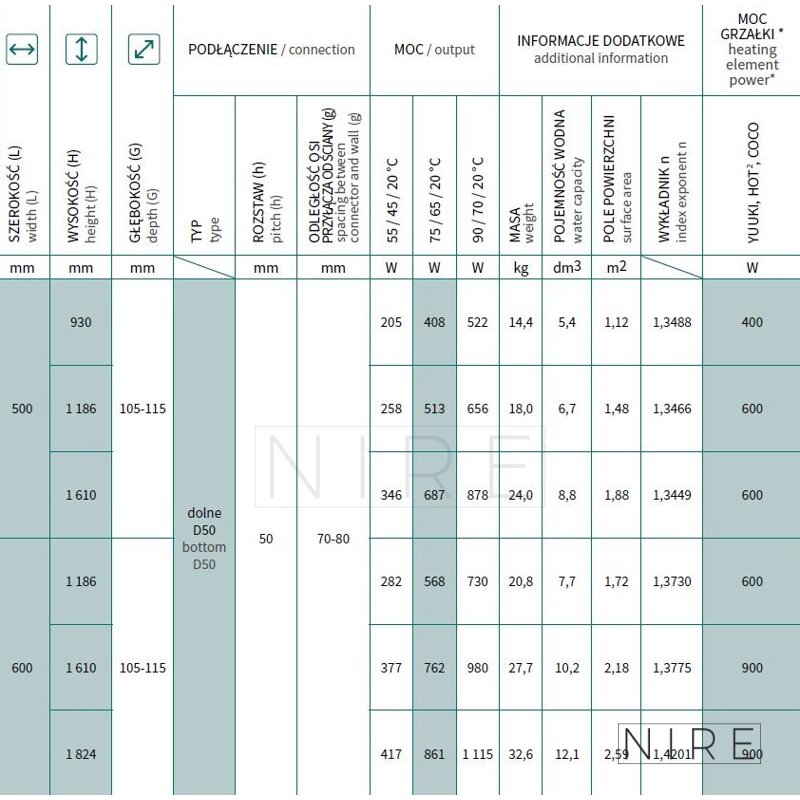 Radiátory jsou dodávány BEZ topné tyče, za rozměrem je pouze uveden vhodný výkon tyče pro patřičný rozměr. Standardní barva C35 white silk (bílá lesklá).