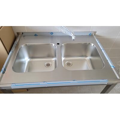 Nerezový mycí stůl se 2 dřezy - gastro nábytek