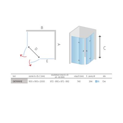Novea sprchový kout, R 550, 90x90x200 cm, pantový, chrom ALU, sklo čiré 6 mm, EC