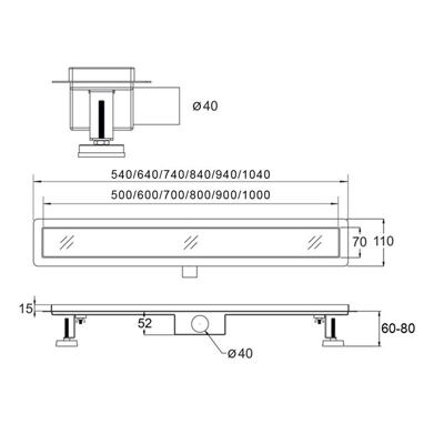 Odtokový sprchový žlab 70 cm, vč. roštu TILE