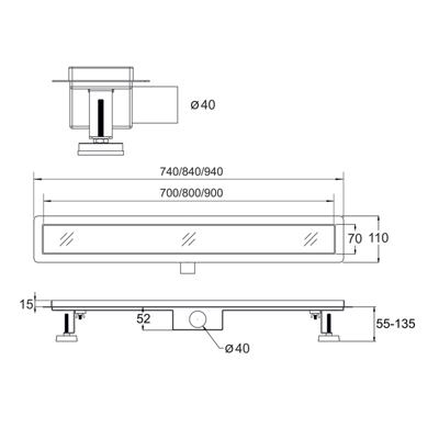 Odtokový žlab je dodáván včetně roštu TILE. Rošt je možné použít jako variantu, kdy je vidět jednolitá nerezová plocha, nebo je možné do roštu nalepit přímo dlažbu.