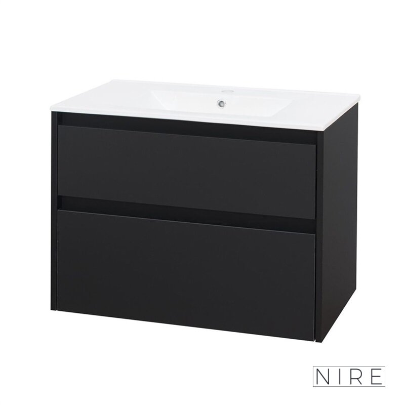 Opto, koupelnová skříňka s keramickým umyvadlem, černá 2 zásuvky, 810x580x458 mm