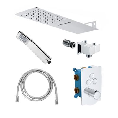 Sprchová sada s termostatickou podomítkovou tlačítkovou baterií - 3-cestná - hranatý kryt