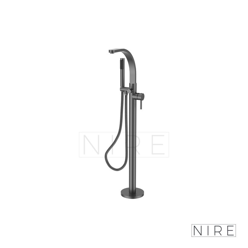 Vanová stojánková baterie je dodávána včetně příslušenství (sprchová růžice a hadice).