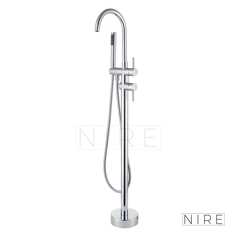 Vanová stojánková baterie je dodávána včetně příslušenství (sprchová růžice a hadice).
