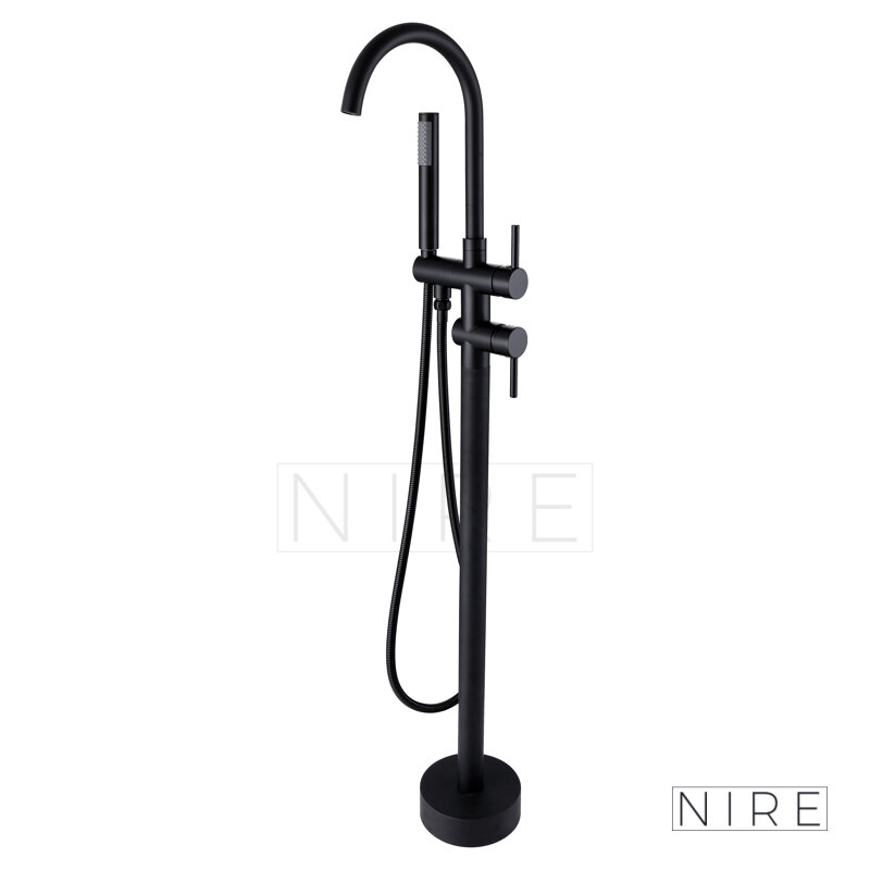 Vanová stojánková baterie je dodávána včetně příslušenství (sprchová růžice a hadice).
