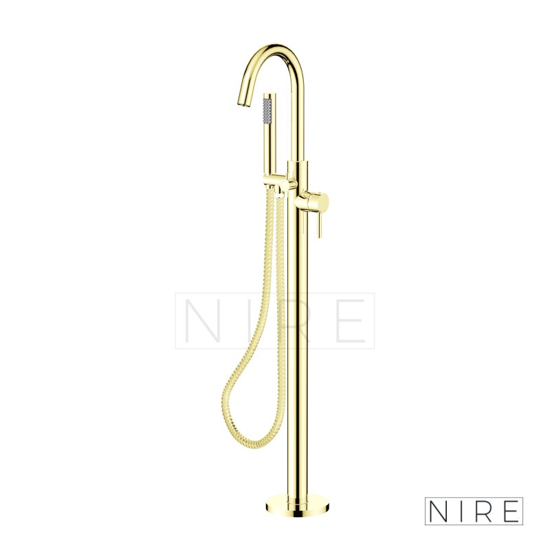 Stojánková baterie do podlahy vypadá skvěle v kombinaci s volně stojící vanou.