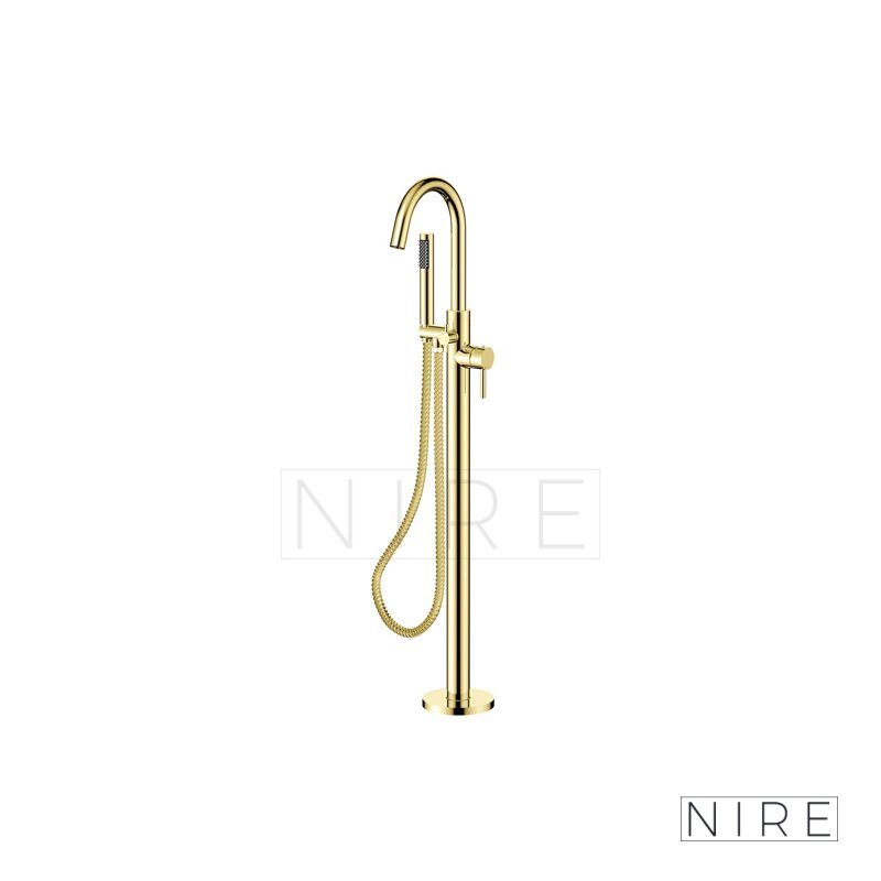 Stojánková baterie do podlahy vypadá skvěle v kombinaci s volně stojící vanou.
