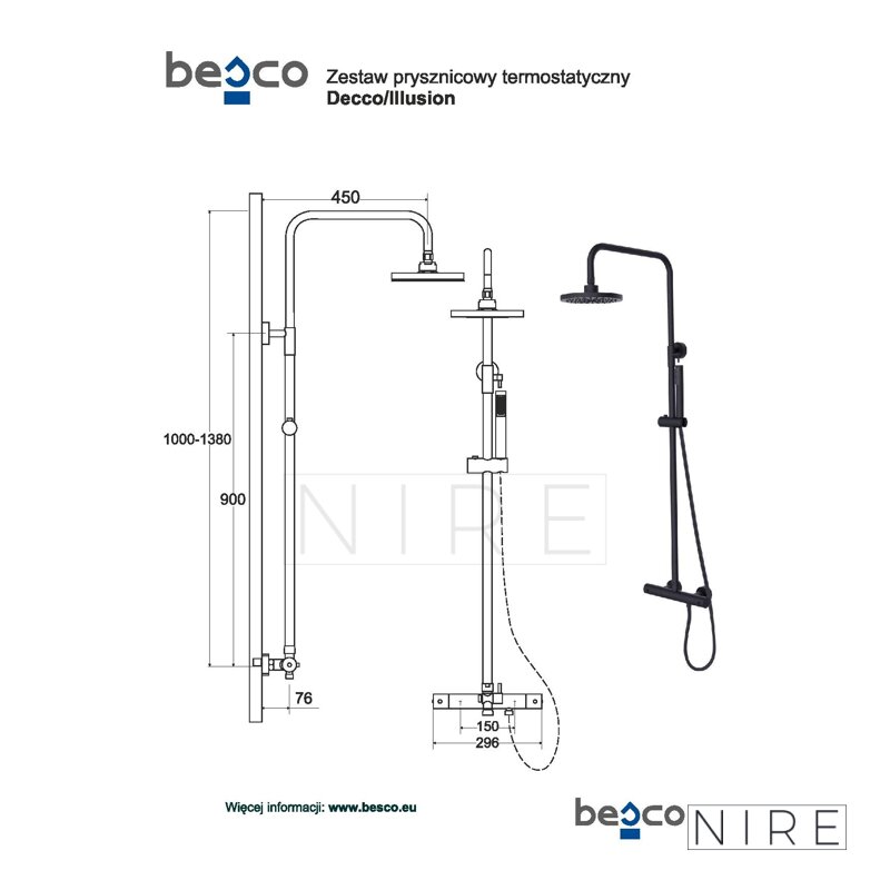 Set termostatické baterie a hlavové sprchy v moderním hranatém tvaru, to je nástěnný set DECCO/ILLUSION grafitová barva: