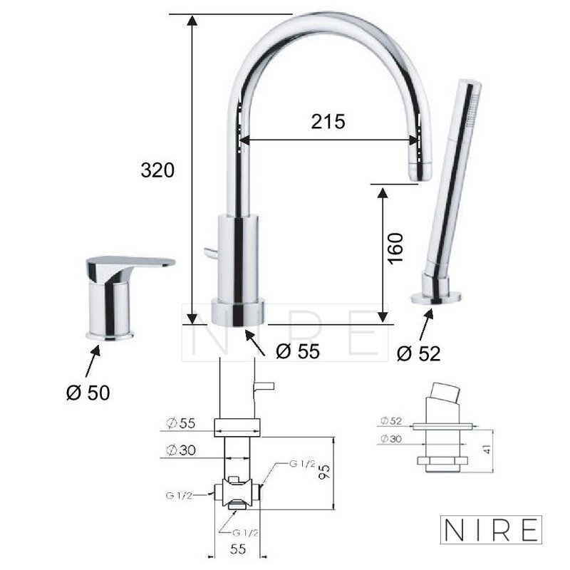 - Vanová baterie stojánková tříotvorová s příslušenstvím