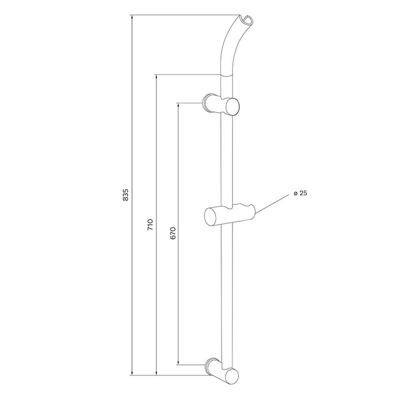 Součástí setu je posuvný držák s tlačítkovou třípolohovou sprchou, plastovou šedostříbrnou hadicí 150 cm a stěnový vývod.