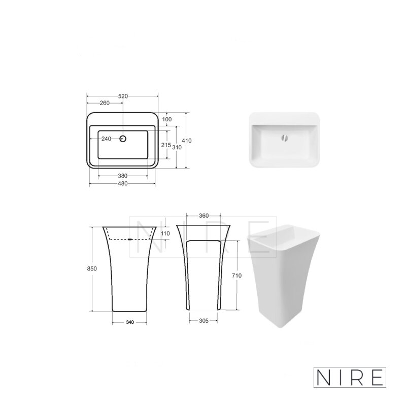Umyvadlo lze objednat bez otvoru nebo s otvorem pro baterii. Vždy je to nutno specifikovat u objednávky. Standardně se umyvadlo dodává bez otvoru pro baterii.