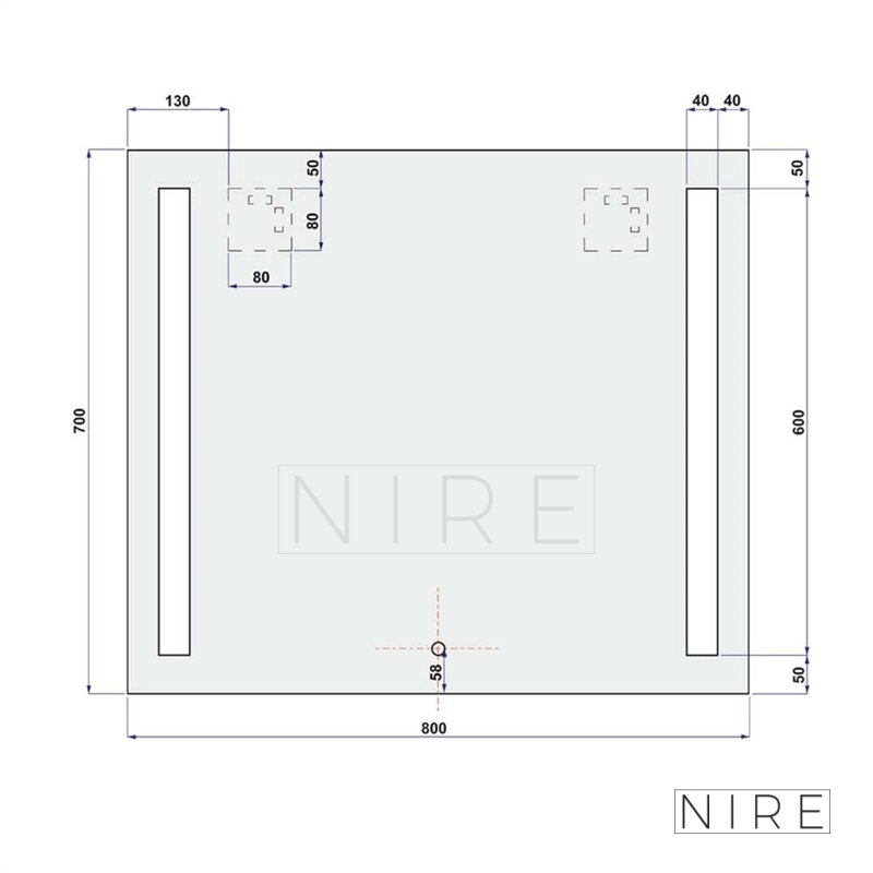 Elegantní zrcadlo s LED osvětlením. Zrcadlo se spouští dotykovým senzorem umístěným se spodní přední části zrcadla. Zrcadlo je vybaveno úchyty (závěsy i vhodné háčky na zeď) pro svislé zavěšení. U zrcadel s osvětlením doporučujeme vývod elektřiny umístit "na střed zrcadla". Délka přívodního kabelu je 1m umožňuje pohodlnou montáž.