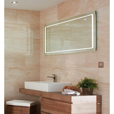 LED-podsvětlené obdélníkové koupelnové zrcadlo na velmi tenké nosné desce. Celková tloušťka výrobku pouze 30 mm. Třída ochrany: IP44. Energetická třída: A-A++. Stříbrné zrcadlové sklo nejvyšší kvality (odolné proti korozi), LED 6000 K. třídy SQ (super kvality), značkový elektronický transformátor a integrovaný kolébkový spínač ON/OFF jsou součástí zrcadla. Možnost výroby atypických rozměrů zrcadla.