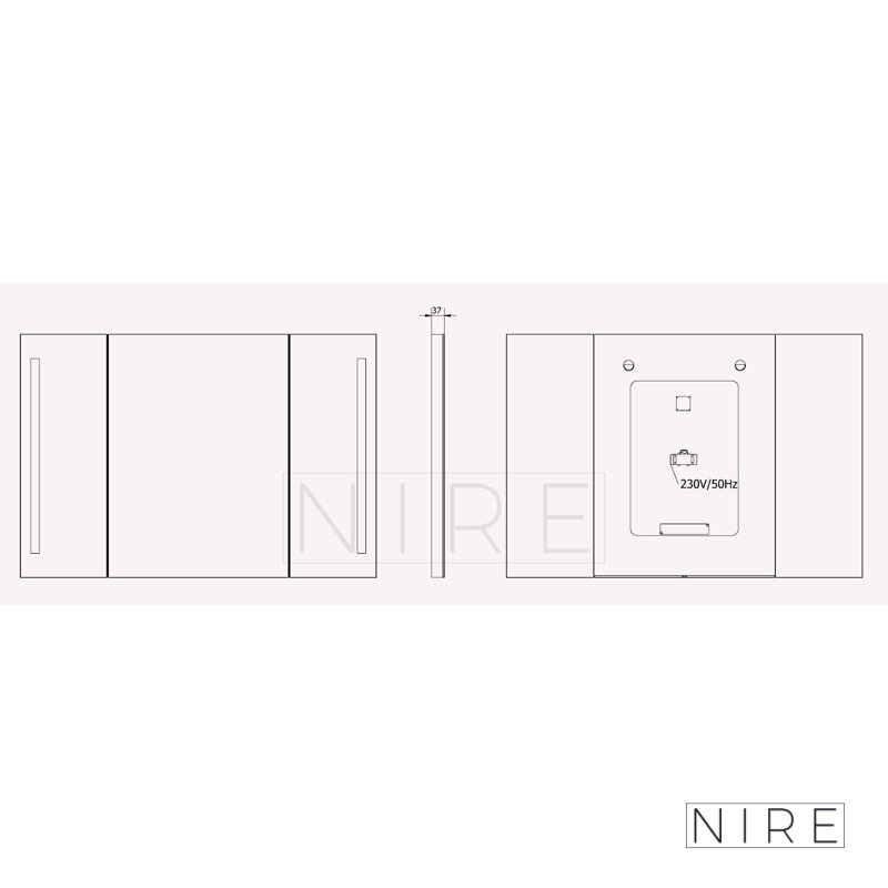 LED-podsvětlené obdélníkové koupelnové zrcadlo na velmi tenké nosné desce. Celková tloušťka výrobku pouze 37 mm. Naklápěcí boční sekce zrcadla pro dokonalý obraz ze 3 směrů současně. Třída ochrany: IP44. Energetická třída: A-A++. Stříbrné zrcadlové sklo nejvyšší kvality (odolné proti korozi), LED 6000 K. třídy SQ (super kvality), značkový elektronický transformátor a integrovaný kolébkový spínač ON/OFF jsou součástí zrcadla. Možnost výroby atypických rozměrů zrcadla.
